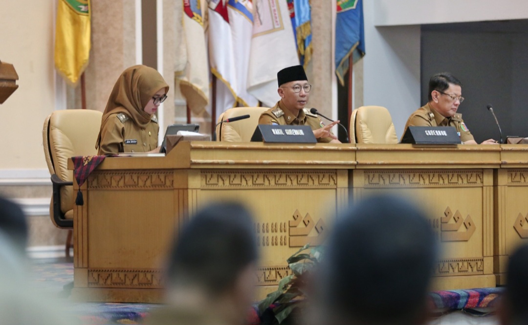 PEMBARUAN.ID – Gubernur Lampung, Rahmat Mirzani Djausal, memaparkan tiga program prioritas dalam Briefing perdana bersama Wakil Gubernur Lampung, Jihan Nurlela, dan para Kepala Organisasi Perangkat Daerah (OPD) di lingkungan Pemerintah Provinsi Lampung. Rapat berlangsung di Lantai III Balai Keratun, Bandarlampung, Senin (03/03/2025).