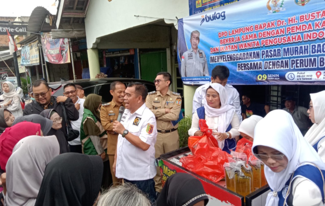 PEMBARUAN.ID (Way Kanan) – Anggota Dewan Perwakilan Daerah (DPD) RI asal Lampung, Bustami Zainudin, menggelar operasi pasar murah di Pasar Baradatu, Kabupaten Way Kanan, Senin (09/03/2026). Kegiatan ini dilakukan sebagai upaya menstabilkan harga bahan pokok sekaligus menjaga daya beli masyarakat menjelang Idul Fitri.