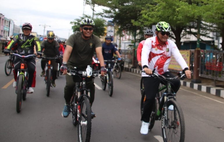 Fun Bike dimulai dari lapangan Koramil Kota dan berakhir kembali di tempat yang sama, diiringi semangat peserta yang tampak antusias mengikuti jalur hingga ke garis finish.