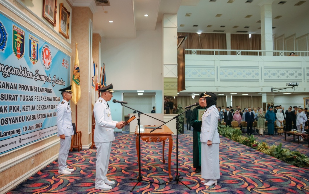 Dalam kesempatan itu, Purnama Wulan Sari Mirza turut menyerahkan surat tugas Plt Ketua Tim Penggerak PKK, Ketua Dekranasda, dan Ketua Tim Pembina Posyandu Kabupaten Way Kanan, kepada Bupati Ayu.
