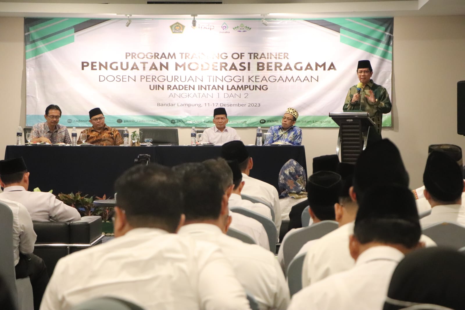 PEMBARUANID – UIN Raden Intan Lampung (RIL) mendapat kepercayaan besar sebagai penyelenggara Training of Trainers (ToT) Penguatan Moderasi Beragama (PMB) untuk Dosen Perguruan Tinggi Keagamaan (PTK) dari seluruh Indonesia. Acara ini diselenggarakan atas kerjasama dengan Kementerian Agama RI dan didukung oleh skema Lembaga Pengelola Dana Pendidikan (LPDP).