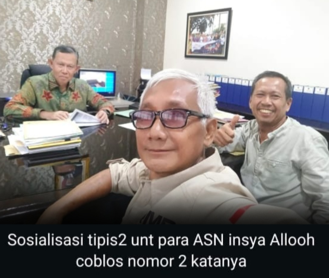 Dalam foto yang diambil, Kamis (03/10/2024) pukul 15.52 WIB itu, Fahrizal tampak tersenyum, mengenakan batik, dengan berkas di tangan. Di sana, terselip keterangan foto bernada santai: Sosialisasi tipis-tipis untuk para ASN, Insya Allah coblos nomor dua katanya.