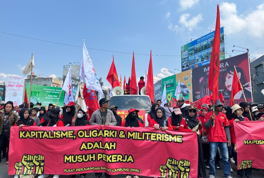 Ratusan masa aksi yang tergabung dalam Aliansi Pusat Perjuangan Rakyat Lampung (PPRL) ini merupakan gabungan dari serikat buruh, petani, serikat perempuan, mahasiswa dan rakyat miskin kota.