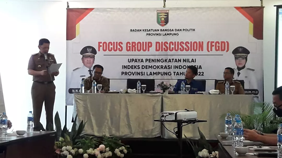Selain Kesbangpol dan BPS, Akademisi Unila Nanang Trenggono juga hadir sebagai pembicara dalam FGD tersebut. (***)