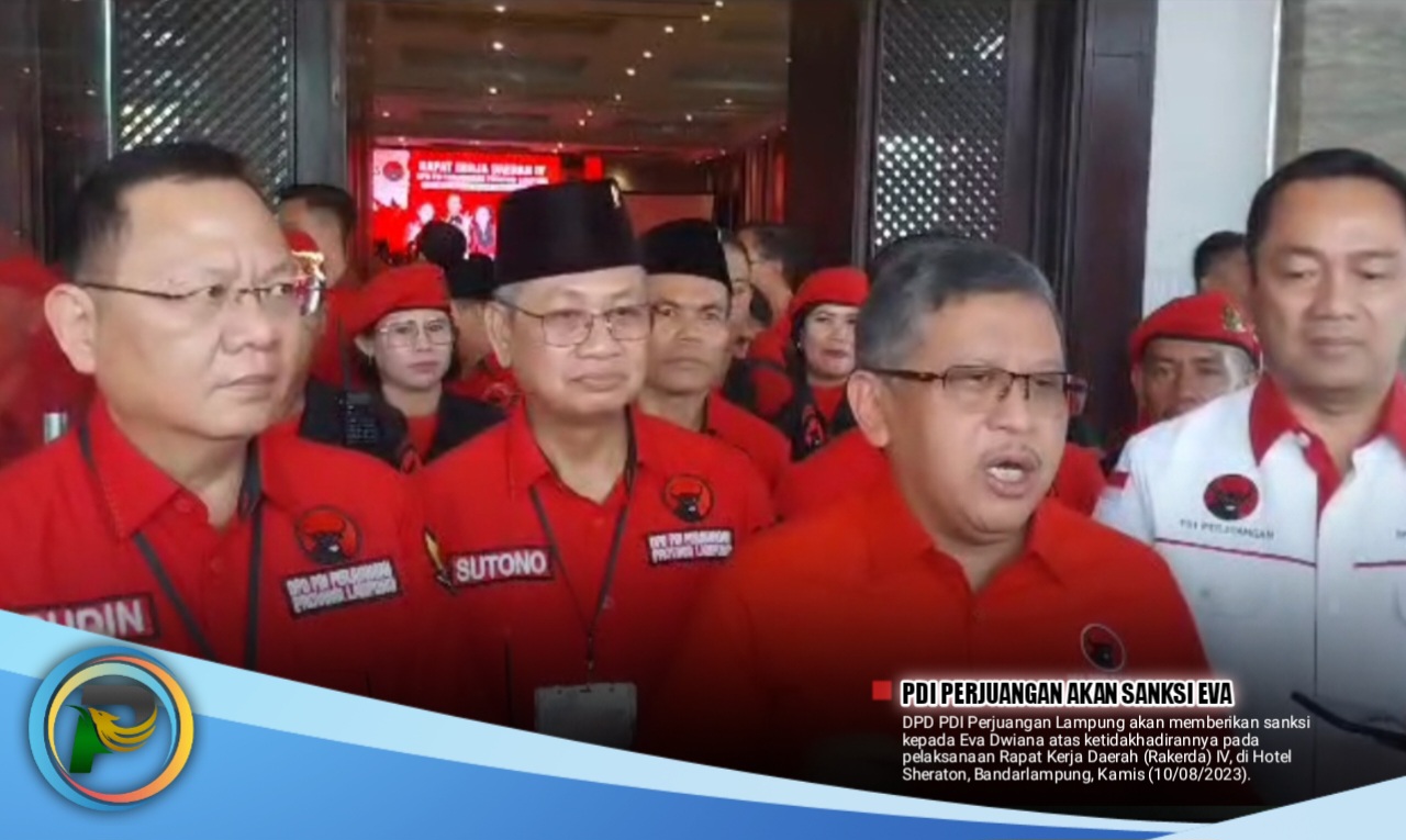 PEMBARUAN.ID – DPD PDI Perjuangan Lampung akan memberikan sanksi kepada Eva Dwiana atas ketidakhadirannya pada pelaksanaan Rapat Kerja Daerah (Rakerda) IV, di Hotel Sheraton, Bandarlampung, Kamis (10/08/2023).
