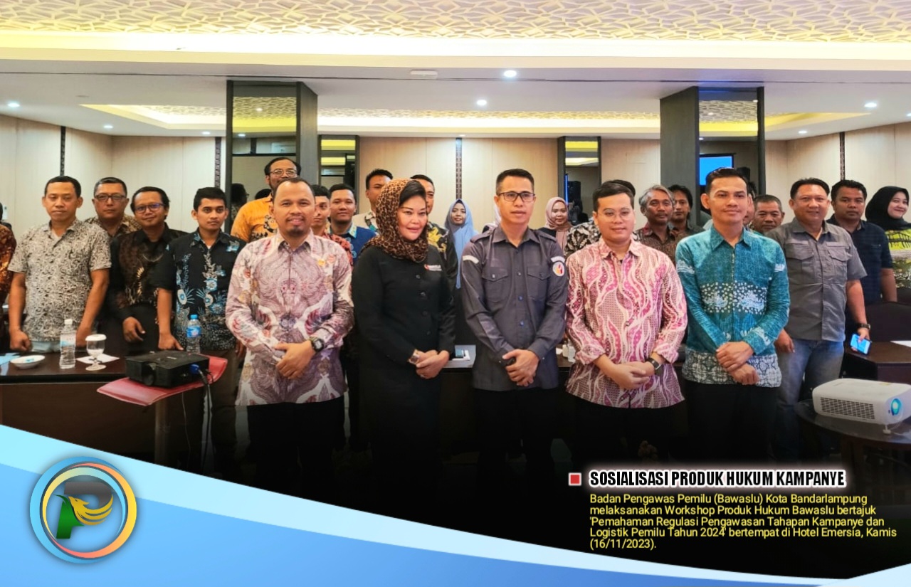 PEMBARUAN.ID – Badan Pengawas Pemilu (Bawaslu) Kota Bandarlampung melaksanakan Workshop Produk Hukum Bawaslu bertajuk ‘Pemahaman Regulasi Pengawasan Tahapan Kampanye dan Logistik Pemilu Tahun 2024’ bertempat di Hotel Emersia, Kamis (16/11/2023).