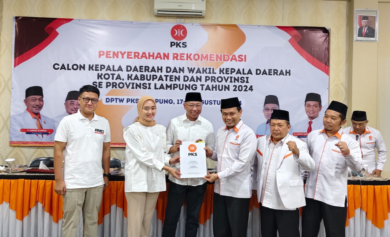 PEMBARUAN.ID – Dewan Pengurus Wilayah (DPW) Partai Keadilan Sejahtera (PKS) Lampung resmi merekomendasikan pasangan Rahmat Mirzani Djausal dan Jihan Nurlela untuk maju dalam Pemilihan Gubernur (Pilgub) Lampung 2024.
