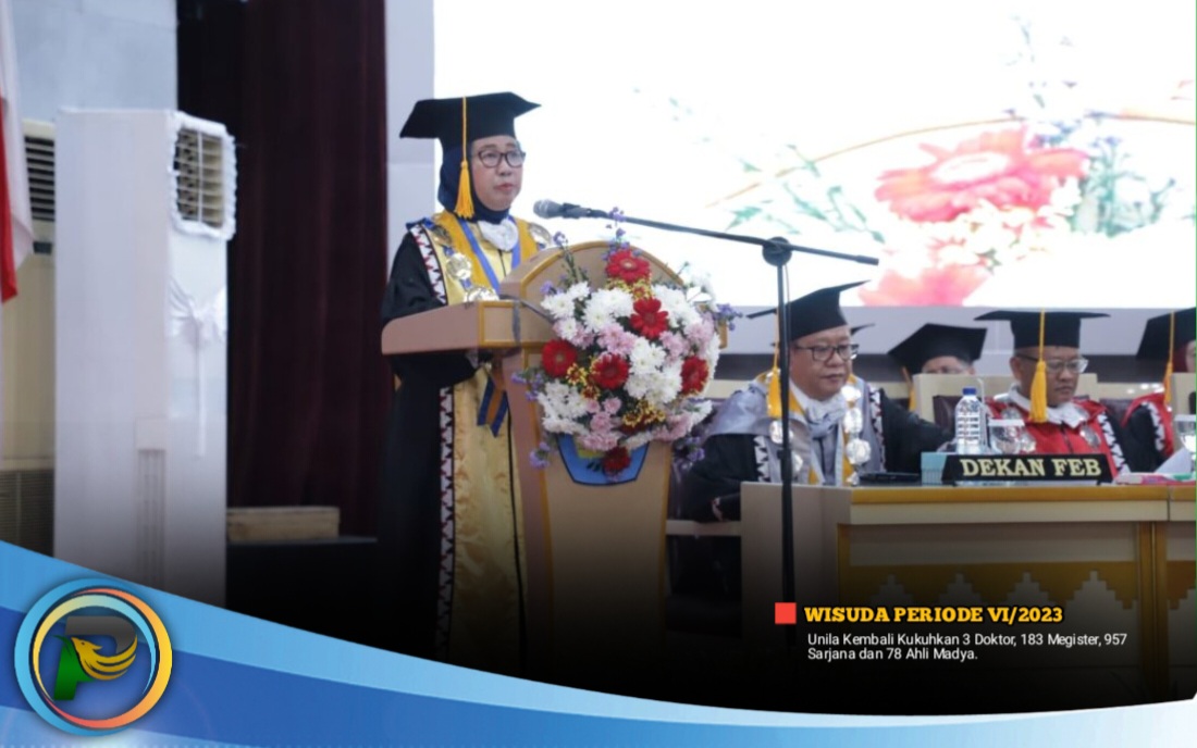Prof. Lusmeilia memaparkan beberapa capaian Unila hingga wisuda periode VI tahun akademik 2022/2023, di antaranya, Unila menempati peringkat sembilan berdasarkan SCImago Institution Rankings tahun 2023, juara 1 Lomba Lagu Daerah dalam ajang Lampung Begawi 2023, juara 1 Matematika Jenius Science Competition tingkat nasional, dan medali emas kejuaraan taekwondo ATF UI Championship 2023 tingkat nasional.